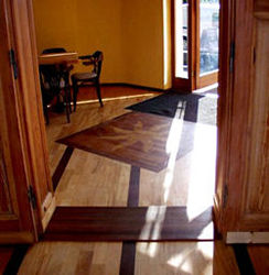 Der Boden ist mit hell - goldgelbem Congona belegt, gegliedert mit rotbraunem Quinilla.